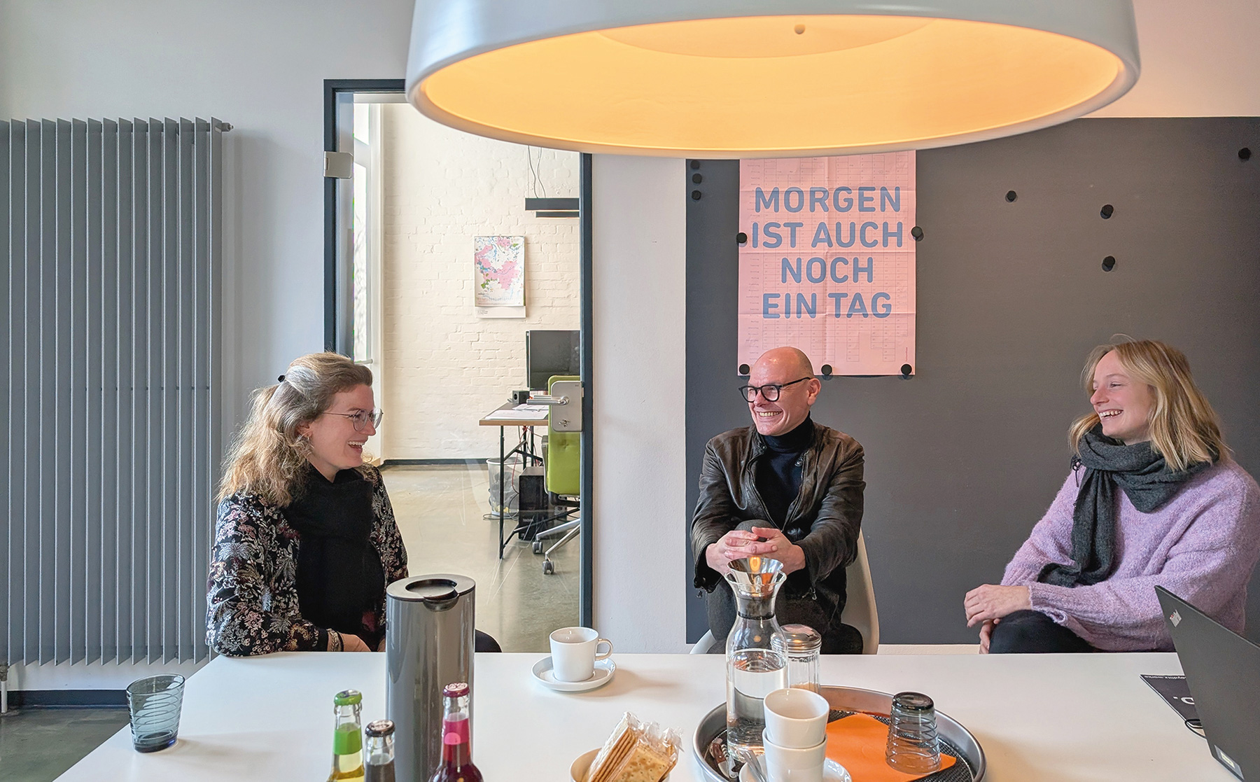 Einmal im Monat treffen sich die Mentees Marsha Dinse und Julia Theis von arcpunktlab mit ihrem Mentor Philipp Loitzenbauer. Es entwickelt sich ein lebendiger und für beide Seiten inspirierender Austausch - eine großartige Initiative der Kammer.