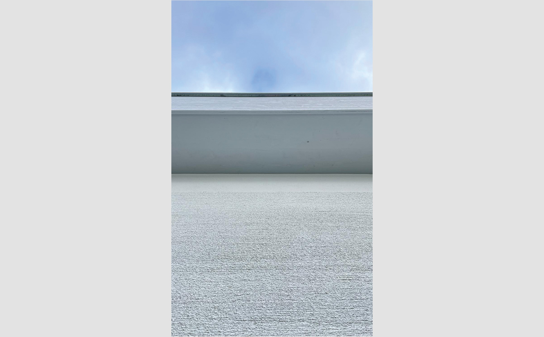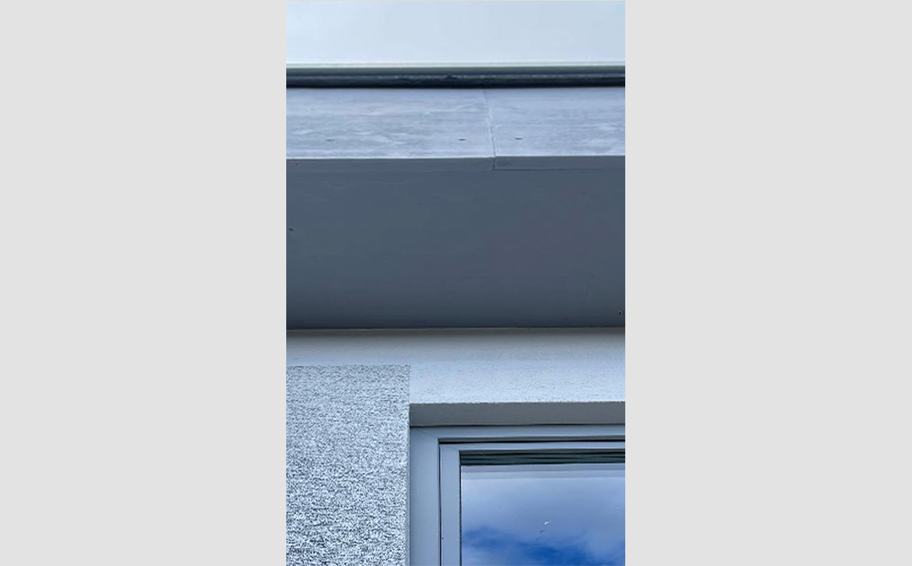 Die Holzbau-Aufstockung eines Bungalows aus den 1970er Jahren nimmt immer weiter Gestalt an. Nach dem Abrüsten zeigt sich die schöne Besenstrich-Struktur der verputzen Holzweichfaser-Platten.