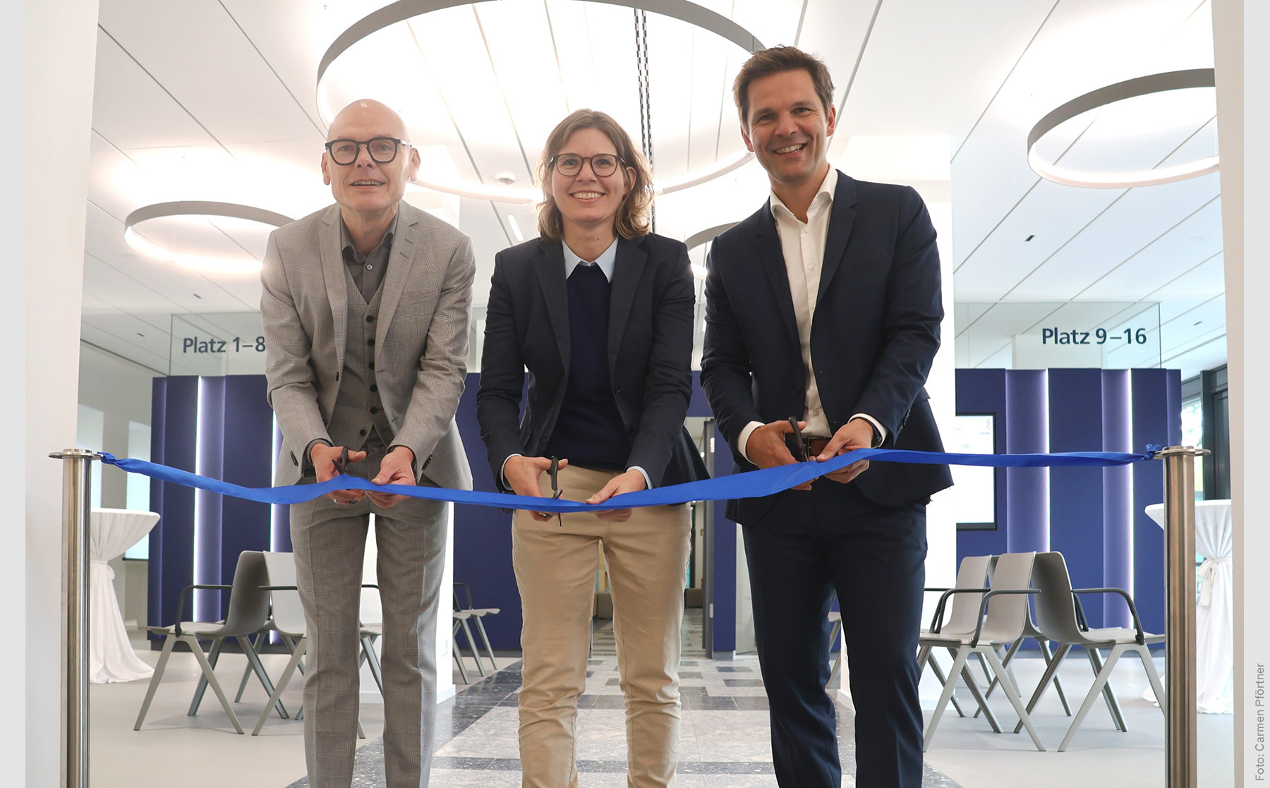 Regionspräsident Steffen Krach und Finanz- und Gebäude-Dezernentin Cordula Drautz würdigten die Nachhaltigkeit des Umbaus, der Mitarbeitenden und Kund*innen ein hohes Maß an Komfort, Transparenz, Effizienz sowie Arbeits- und Aufenthaltsqualität biete, und nicht zuletzt die Einhaltung des Budget- und Terminplans.