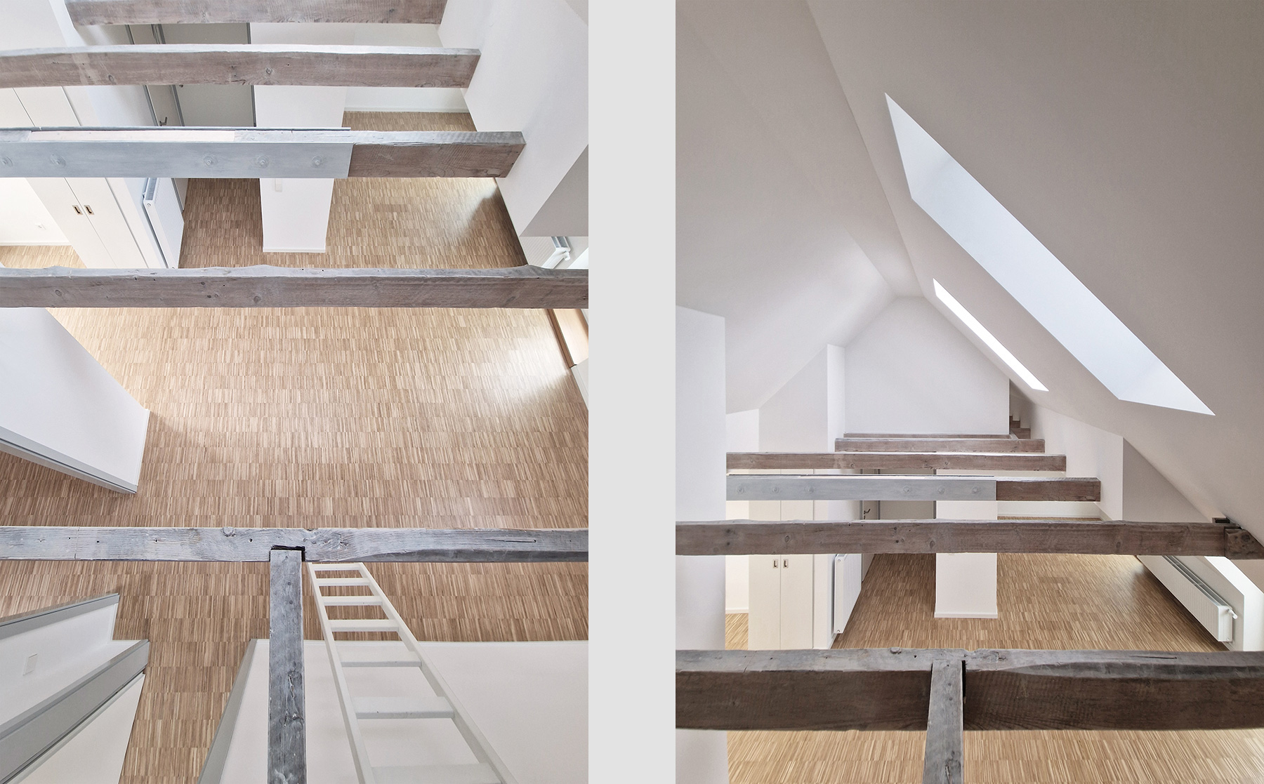im Dachgeschoss sind zwei gut geschnittene, kleine Wohnungen entstanden, die sich durch ihre optimale Raumausnutzung und optische Großzügigkeit - mit Galerieebenen und besonderen Aus- und Durchblicken - auszeichnen.