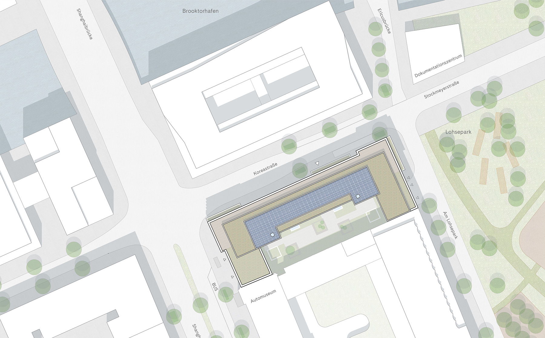 Durch die Zusammenlegung der Hauptzollämter Hamburg-Stadt und Hamburg-Hafen und die Integration des „Hauptzollamtes Jonas“ sollen verschiedene Organisationseinheiten in einem zu errichtenden Low-tec-Bürogebäude auf einem benachbarten Grundstück des Hauptzollamtes Hamburg untergebracht werden.