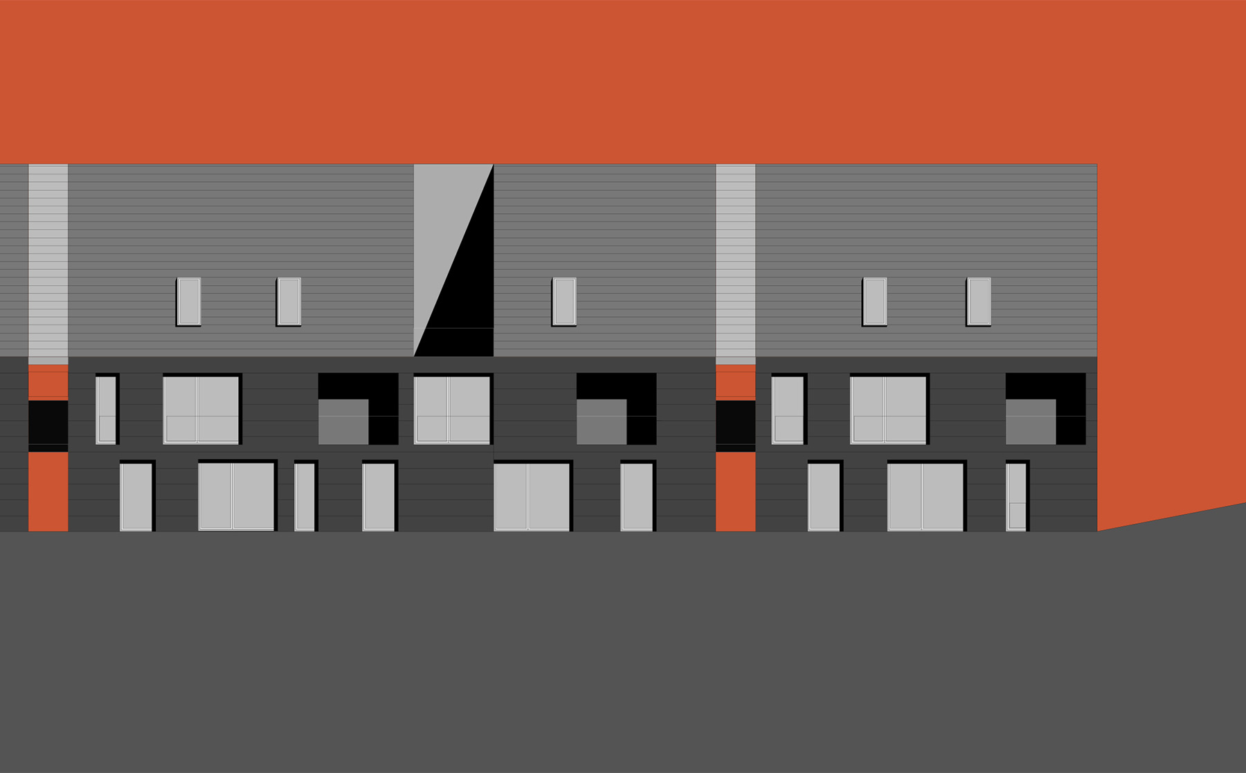 Das Winseler Zentrum wird durch eine nord-süd gerichtete Bebauung aus zwei Gebäuden neu defieniert. Die Gebäude stellen die größte Konzentration von Bauvolumen innerhalb des Ortes dar und bilden eine kräftige Querrichtung zur Entwicklungslinie des Dorfes. Das neue Rathaus fungiert dabei als nördliches Kopfende und ist gegenüber der vorgeschlagenen Wohnbebauung verschoben. Mit dieser Anordnung wird westlich ein neuer, zentraler Ort öffentlichen Lebens formuliert, der die unterschiedlichen Aspekte der dörflichen Gemeinschaft bündelt und miteinander in Beziehung setzt.