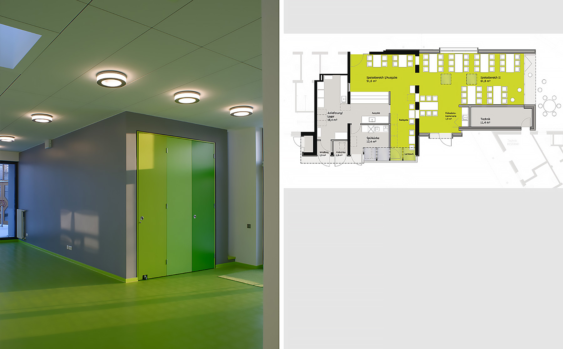 Für den neu eingeführten Ganztagsschulbetrieb war die Errichtung einer Mensa erforderlich.