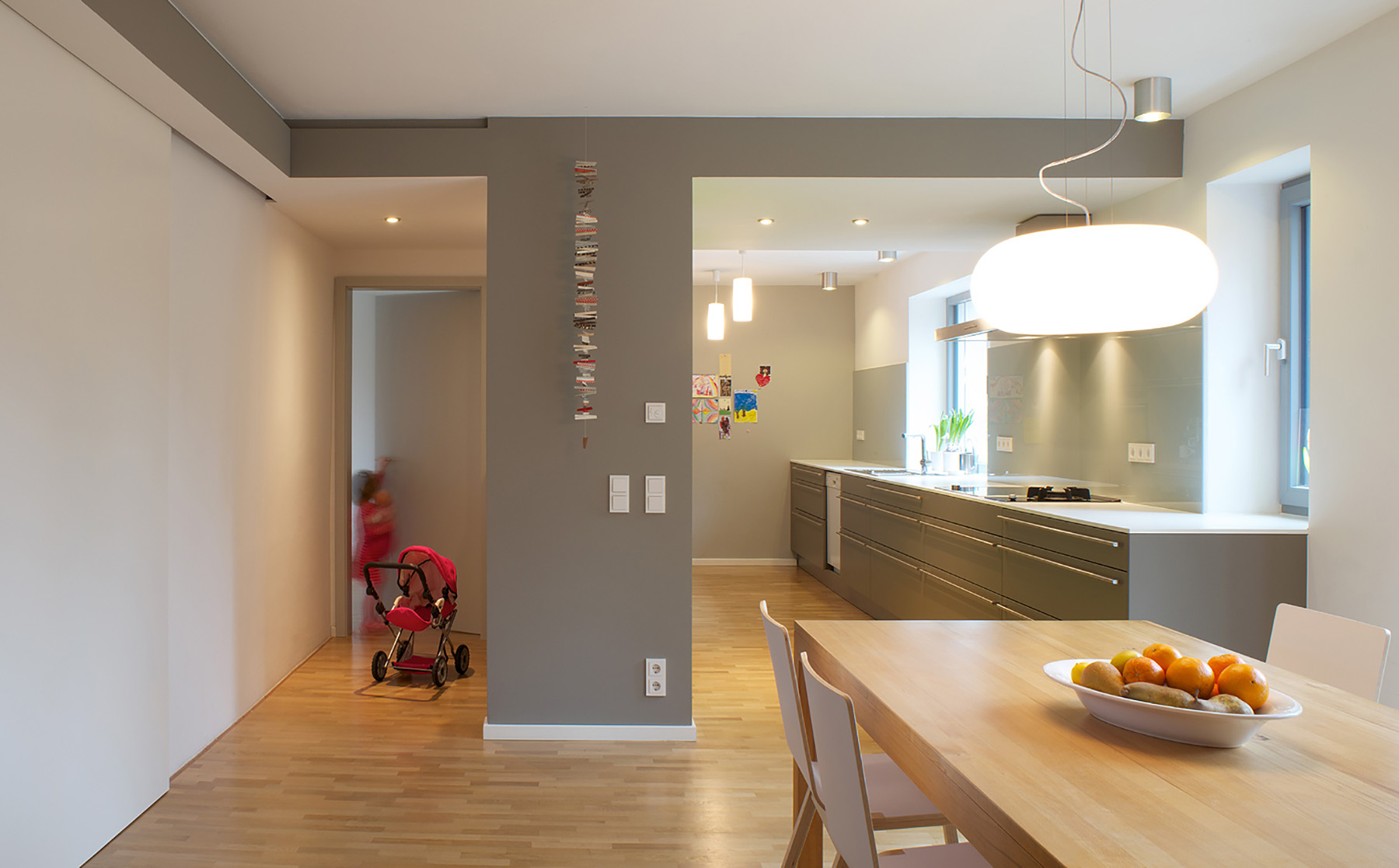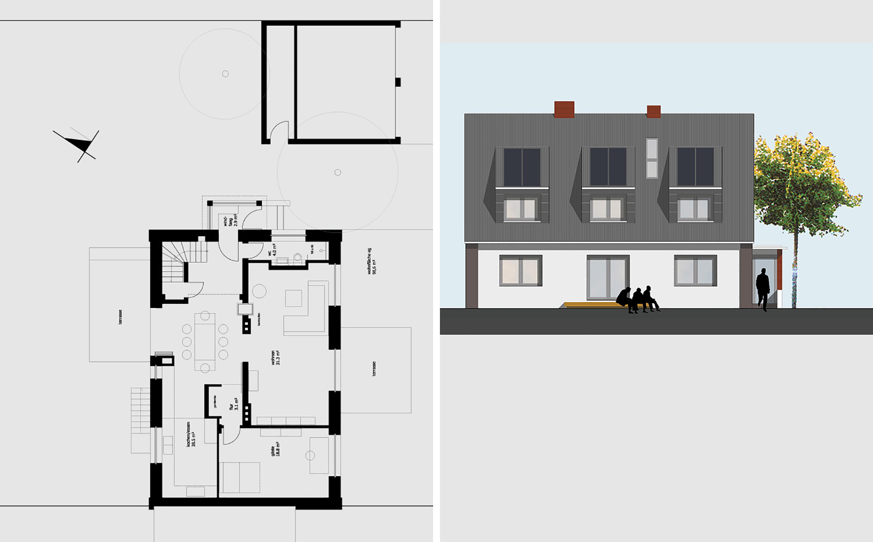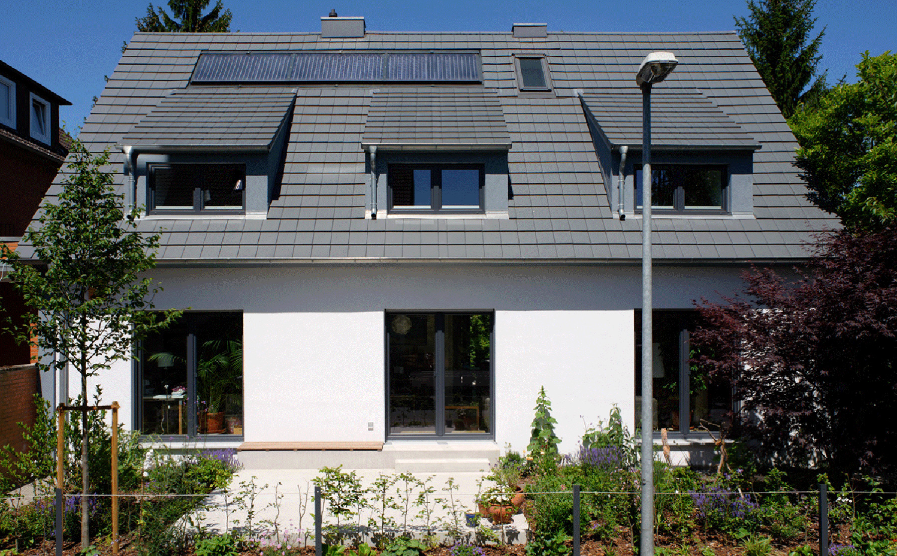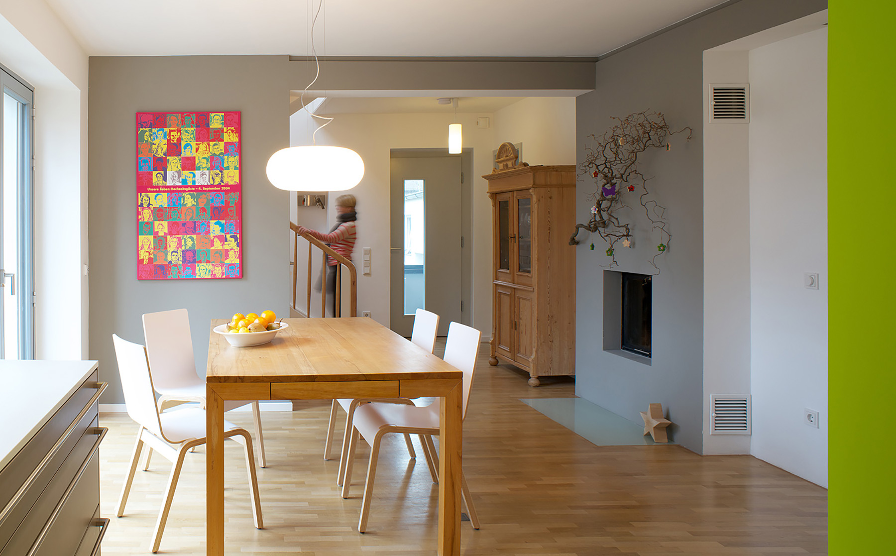 Das Zweifamilienhaus aus dem Jahr 1949 wurde für eine fünfköpfige Familie umgebaut und energetisch zu einem KfW-100-Effizienzhaus saniert.