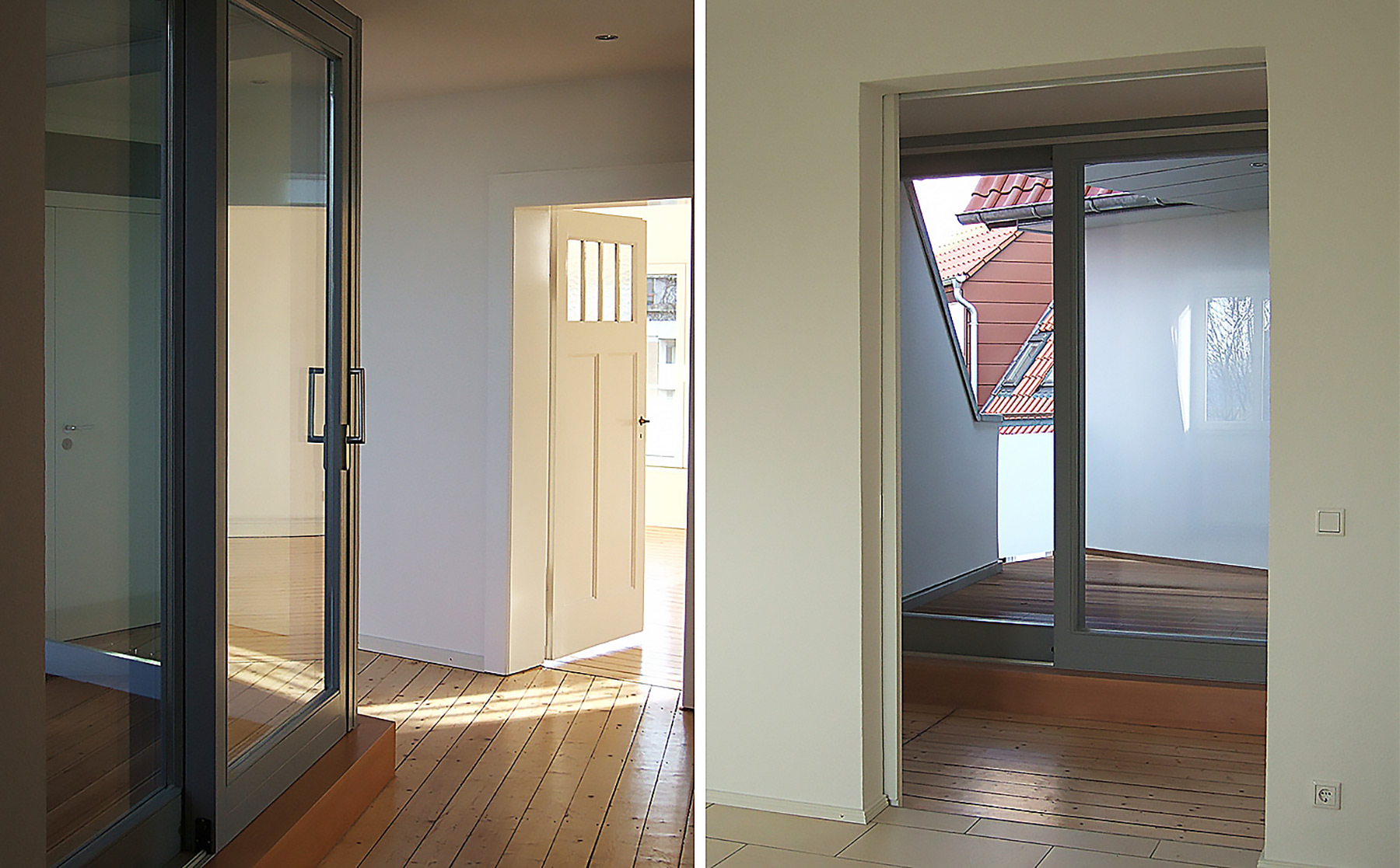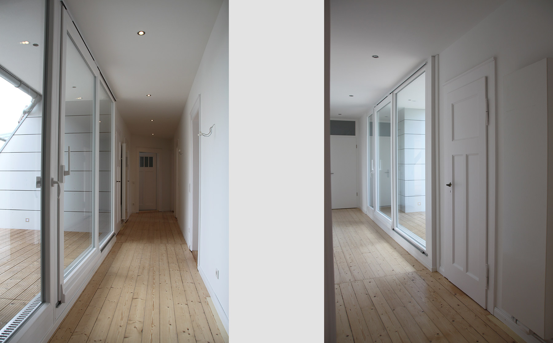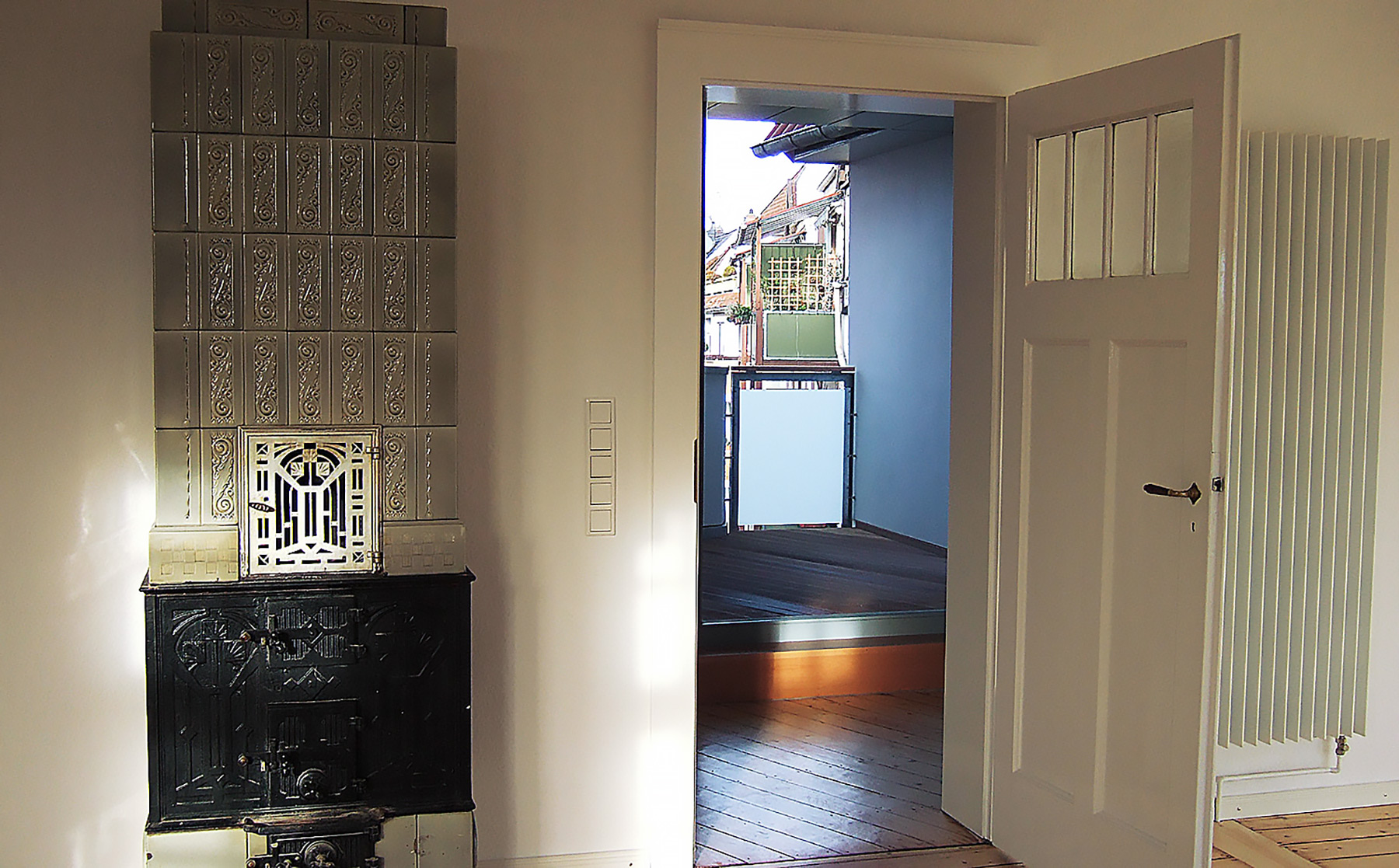Beide Dachgeschosswohnungen wurden grundlegend und hochwertig saniert und jeweils um eine zentrale Dachloggia erweitert. Dies erfolgte wohnungsweise 2007 und 2019.