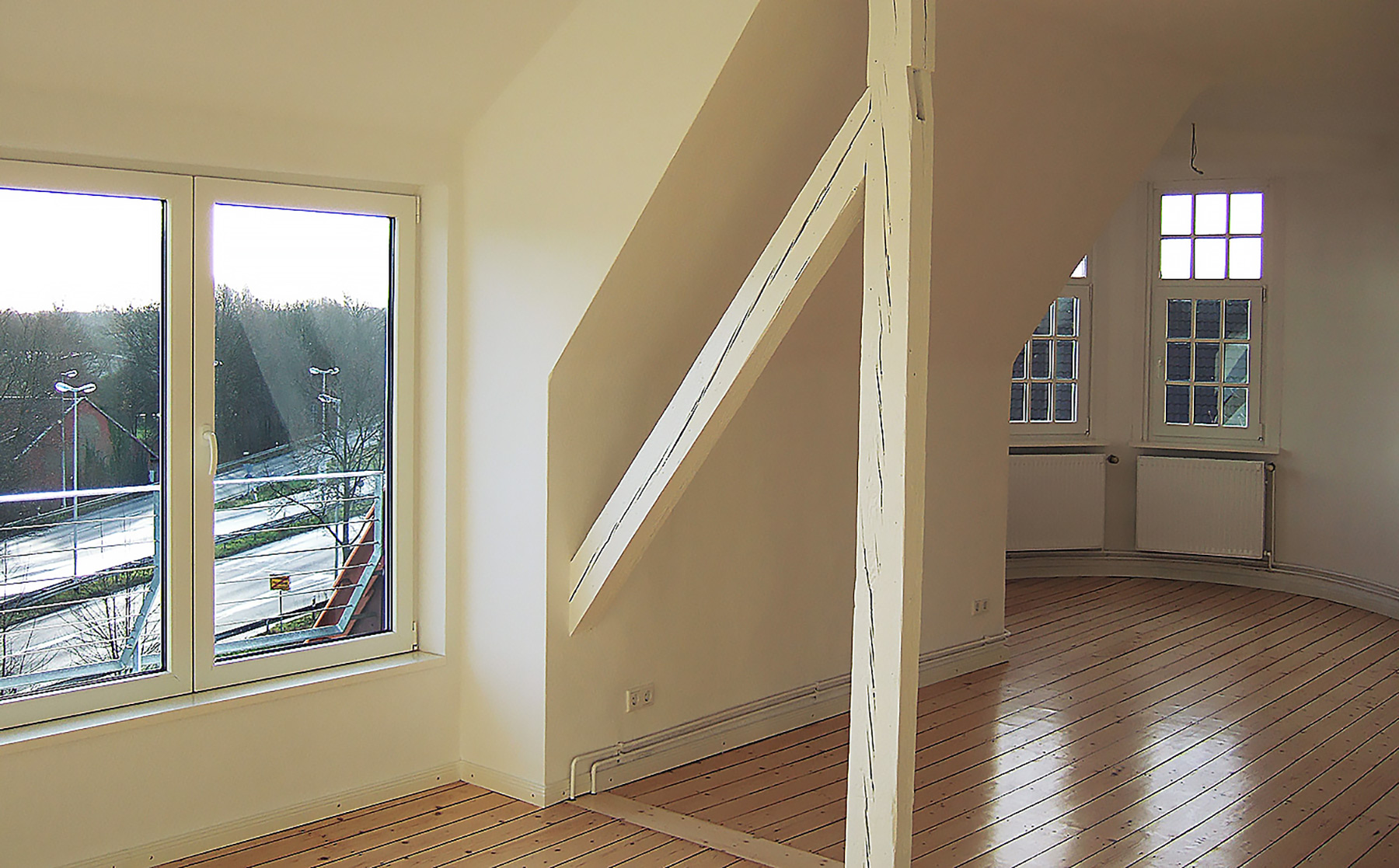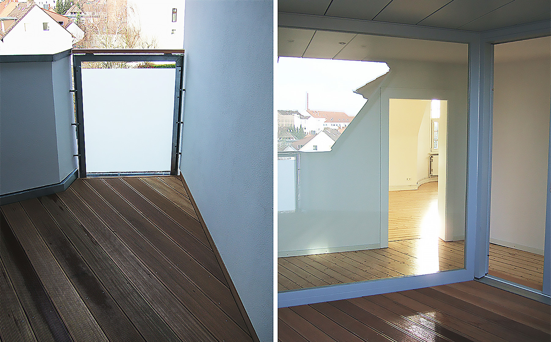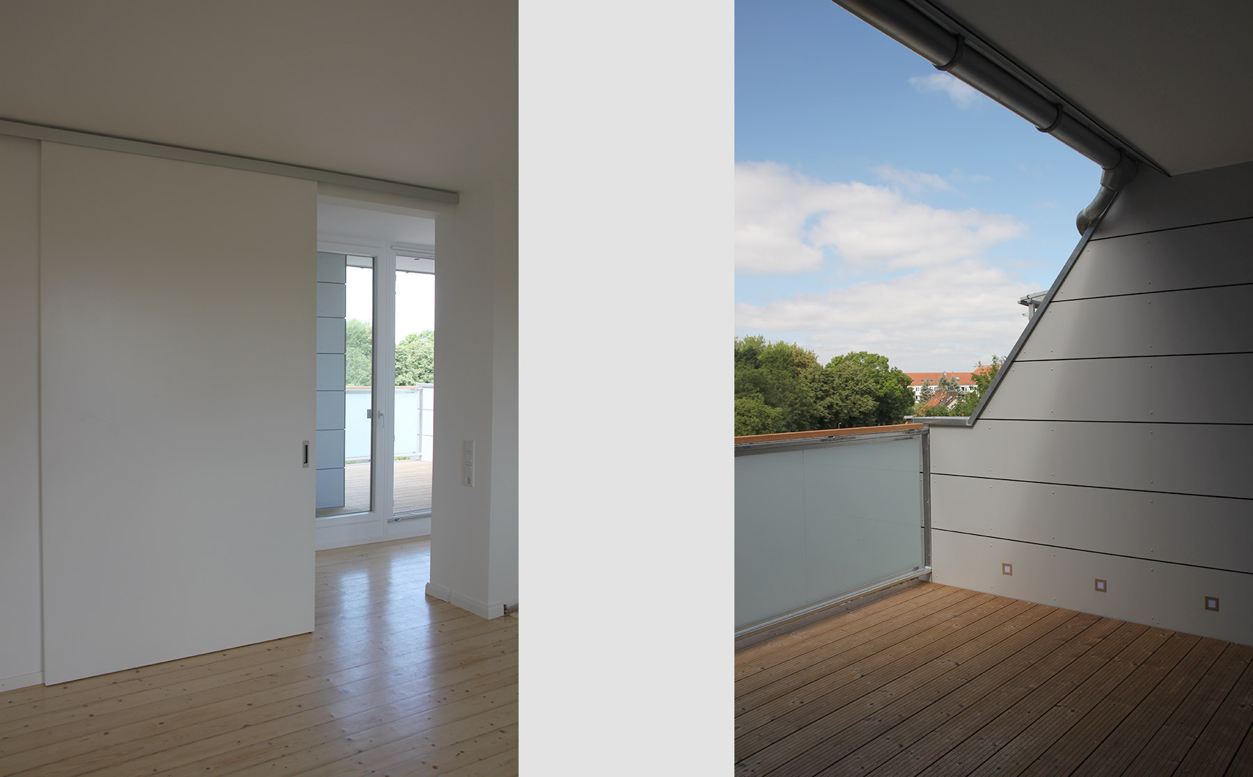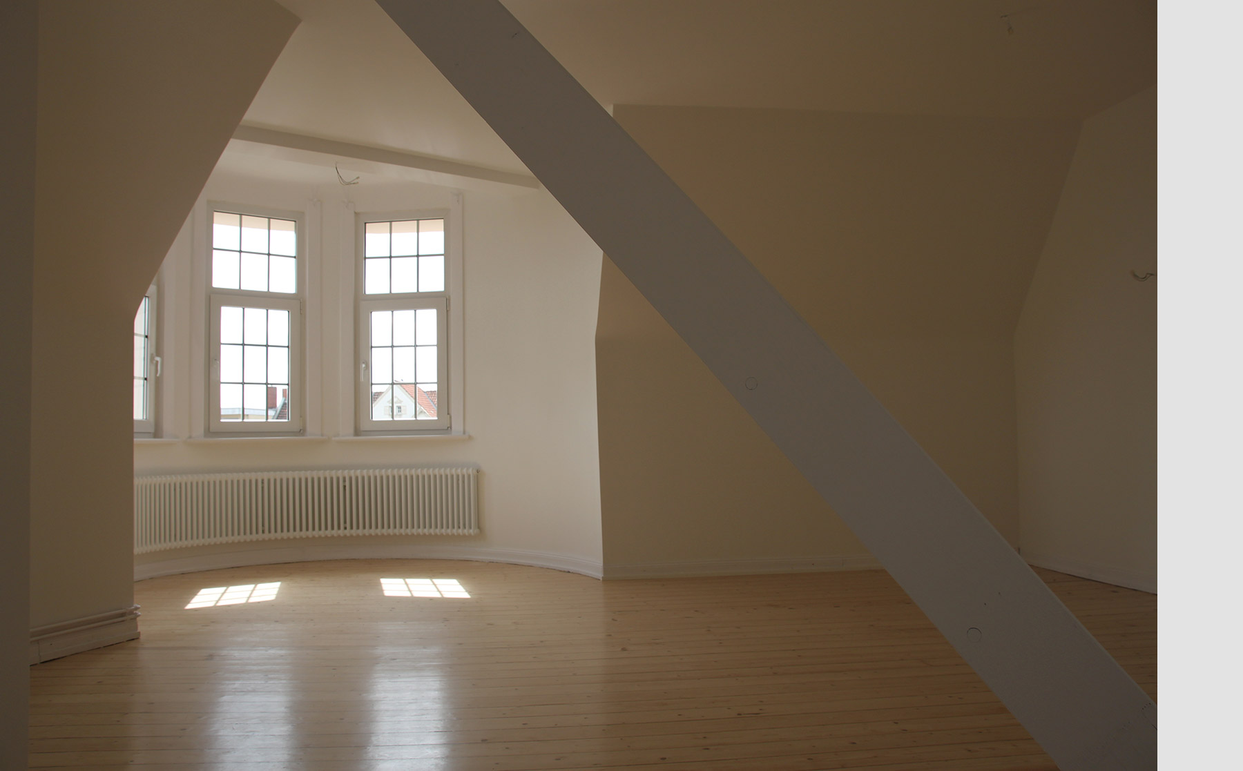 Beide Dachgeschosswohnungen wurden grundlegend und hochwertig saniert und jeweils um eine zentrale Dachloggia erweitert. Dies erfolgte wohnungsweise 2007 und 2019.